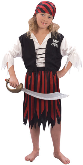 Pirate girl costume - includes shirt with waistcoat, skirt, bandana & belt sword not included.