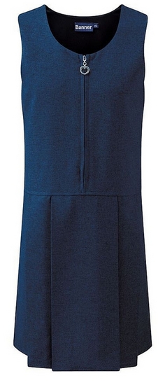 Pleated pinafore- fully lined bodice 100% polyester bi stretch material - novelty charm on zip