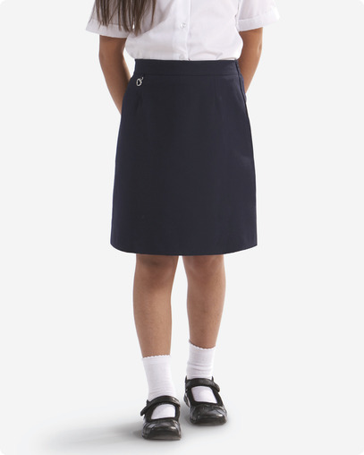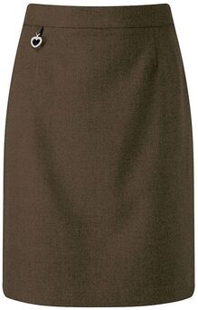 65% Polyester 35% viscose straight skirt - side jetted pocket with zip fastening - elasticated back - decorative charm at waist - teflon stain resistant finish